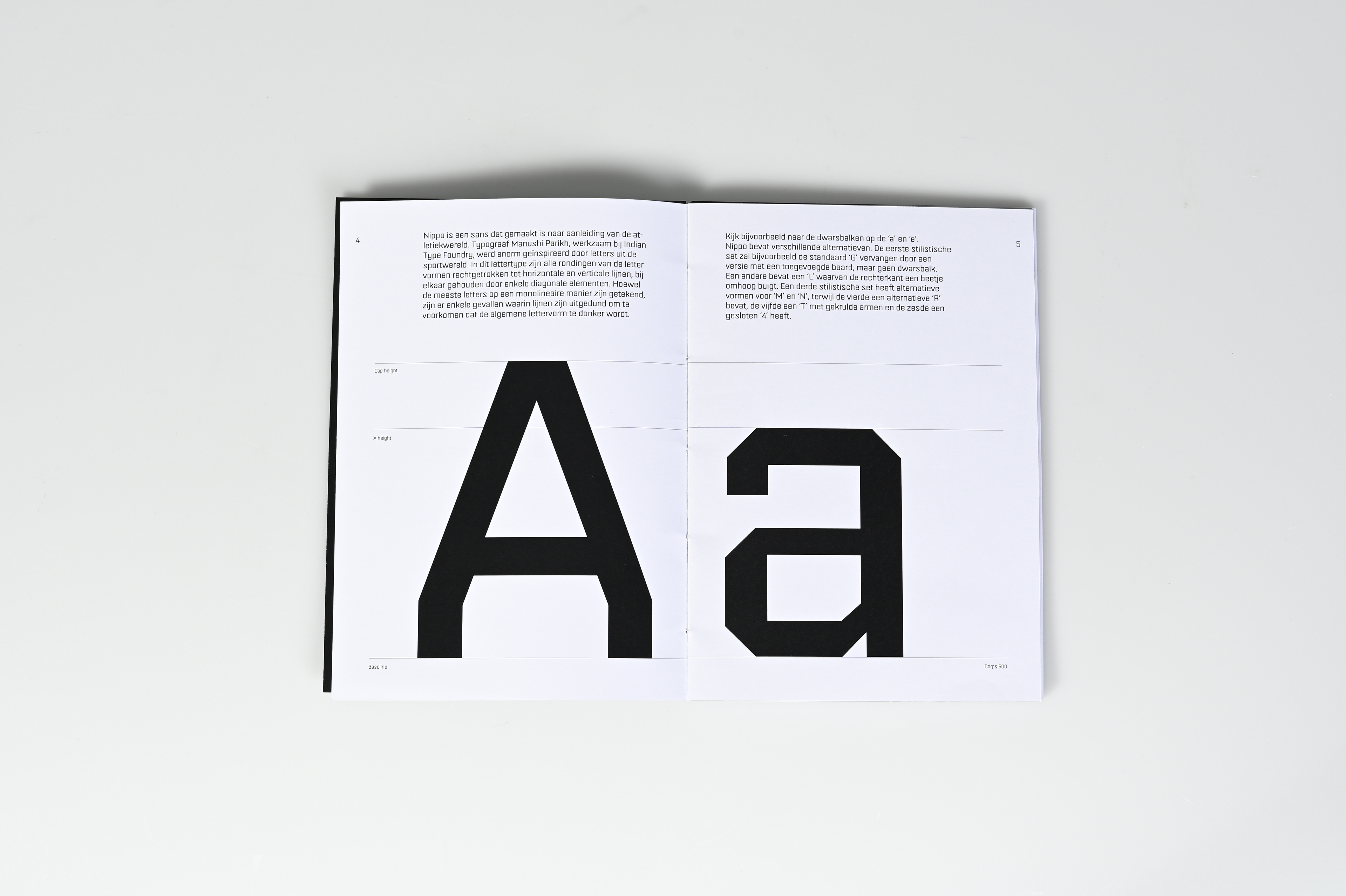 Een letterproef ontwerp voor het lettertype Nippo.